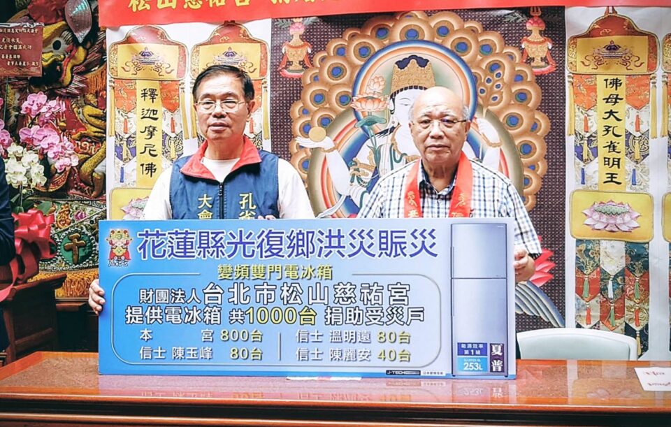在本次聯合行動中,松山慈祐宮董事長陳玉峰先生於日前記者會上宣布,為協助花蓮光復鄉受災居民盡快恢復日常生活,慈祐宮已捐贈新台幣一千二百五十萬元作為災區救助基金。首批一千台冰箱已緊急募集,並將分批運送至災區,預計將完成約兩千台冰箱的捐贈目標。